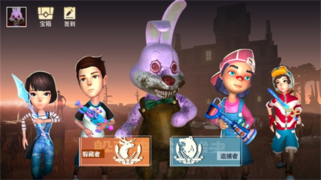 1. 阵营选择与角色定位:追捕者需优先熟悉角色技能,如“猎人”的冲刺突进适合快速封锁区域,“巫师”的群体减速适合控制密集躲藏点。躲藏者则需根据地图特点选择变身道具,例如在书架密集区域变身为书籍,在厨房区域变身为餐具。