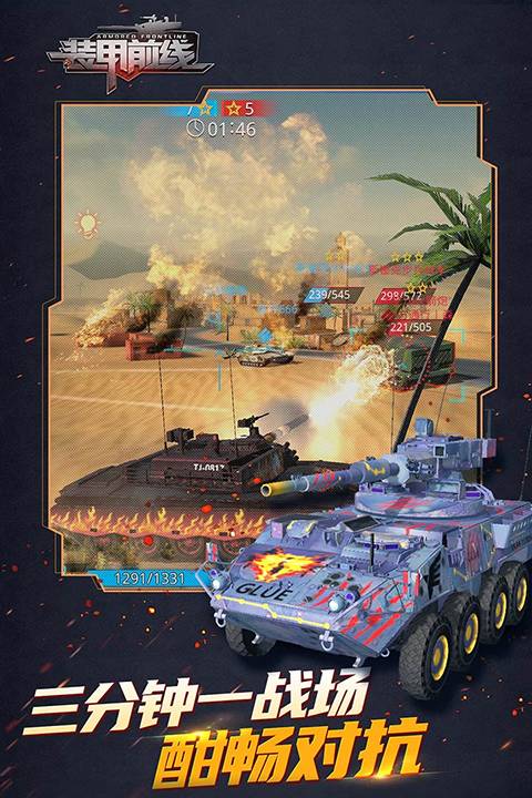 《装甲前线汉化版》是一款以现代战争为背景的3D写实风格载具射击手游,由北京空中信使信息技术有限公司开发并发行。游戏以坦克、装甲车、无人机等现代陆战载具为核心,支持5V5即时对抗,提供荣誉猎杀、乱斗求生、能源攻防等多种快节奏战斗模式。玩家可操控百余辆真实还原的战车,通过配件改造系统自由搭配穿甲弹、高爆弹等差异化弹药,体验高精度物理碰撞与动态战场环境。游戏已更新至1.40.1版本,新增战车K3、传奇装备及多平台互通功能,客户端大小约767MB至948MB,适配Android/iOS系统,适合18岁以上玩家体验现代战争的热血与策略。