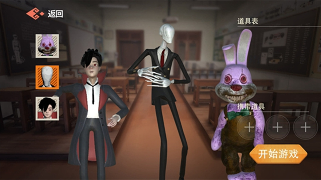 《道具之夜躲猫猫追捕者中文版》是一款以非对称对抗为核心玩法的安卓恐怖竞技手游,玩家可化身追捕者或躲藏者展开1v4/4v1的阵营对抗。游戏以暗黑卡通画风构建了多张动态地图,场景中遍布可交互的障碍物与隐藏区域,追捕者需利用探测器、陷阱网等专属装备,结合环境音效与视觉线索锁定目标,而躲藏者则能变身为场景物品并使用隐身斗篷、瞬移符咒等道具逃脱。游戏融合了策略博弈与心理对抗,追捕者需在限定时间内抓捕全部躲藏者,而躲藏者则需破解密码机、开启逃生门,紧张刺激的追逐战与随机生成的地图机制让每局游戏都充满变数。