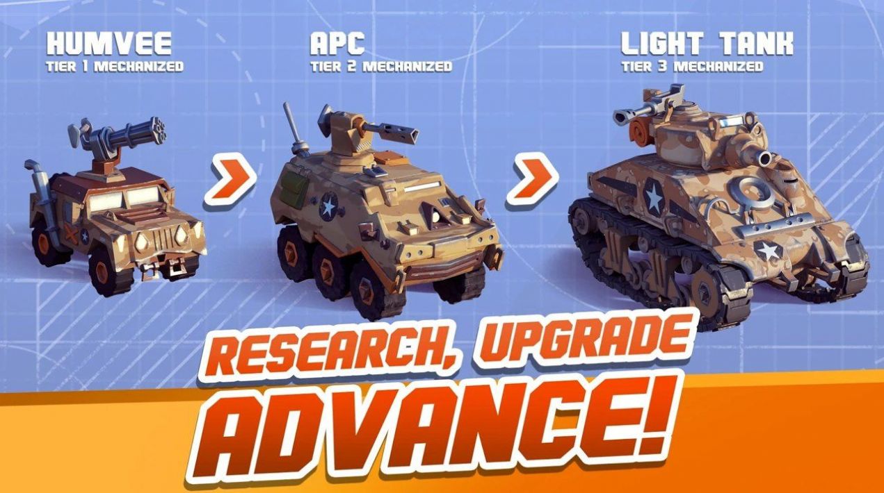 3. 军团建设体系:通过资源采集可建造兵营、工厂、防空塔等20类建筑,形成生产-防御-进攻的闭环系统。高级建筑可解锁特殊单位,如喷气式战机与重型坦克。