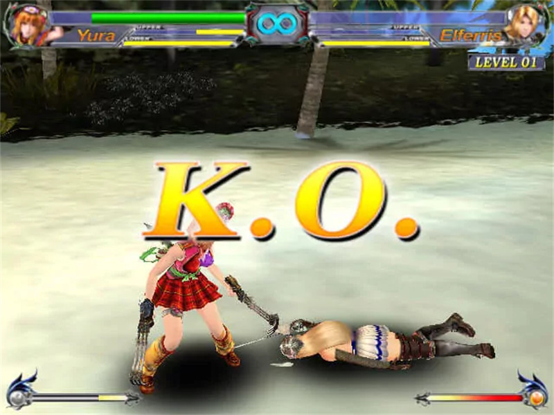 1. 核心战斗机制:采用“生命槽+衣甲槽+超杀槽”三重系统。生命槽归零则角色失败;衣甲槽分上下装,受攻击后对应部位服装逐渐破损脱落,且不同攻击方式(如上段斩击、下段踢击)会针对性破坏特定部位;超杀槽通过受击或按住↑+防御键蓄气,满槽时可释放威力强大的超必杀技,即使被防御仍会削减对手生命值。