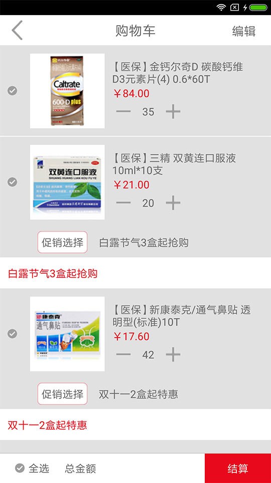 3. 浏览选购:在软件内浏览各类药品信息,选择需要购买的药品加入购物车。
