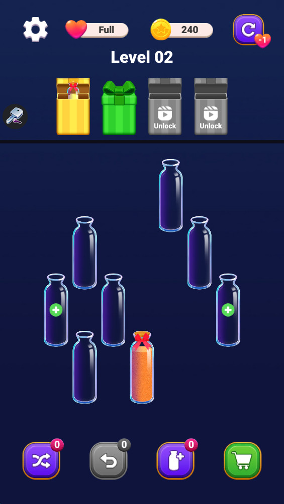 1. 核心玩法:玩家通过拖拽或滑动屏幕控制工具(漏斗、磁吸棒、筛网等)分离混合彩沙,需在倒计时结束前完成分类目标。例如,初级关卡仅需分离3种基础色,高级关卡则需同时处理6种颜色并避开“污染沙粒”。