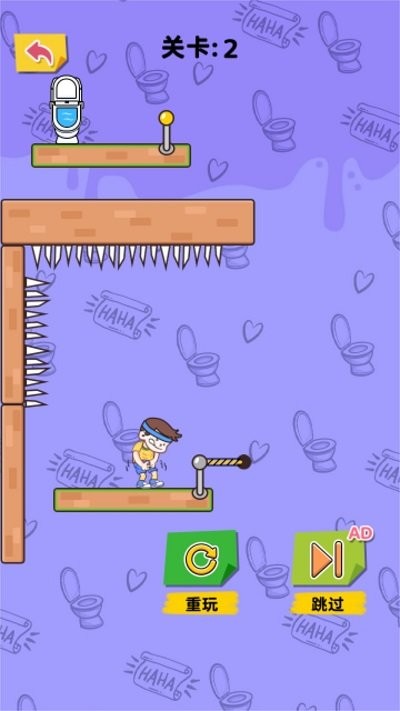 1. 核心玩法:玩家通过手指滑动屏幕画线,连接角色起始位置与厕所位置,需避开障碍物且路线不可交叉碰撞,否则判定失败。部分关卡需利用场景中的特殊机制(如反弹板、传送门)完成路径规划。