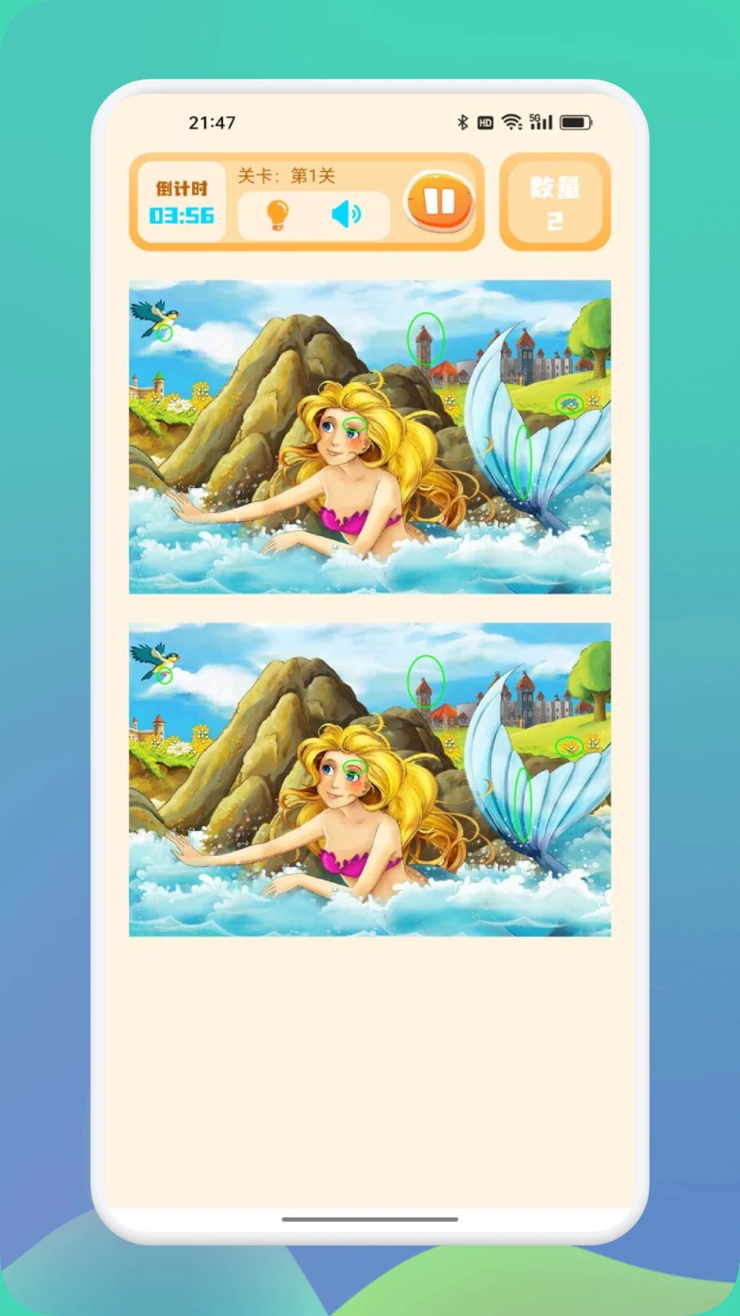 1. 基础操作训练:前5关为教学关卡,重点训练“滑动圈选差异”与“时间管理”技能,建议新手优先完成以熟悉操作逻辑。