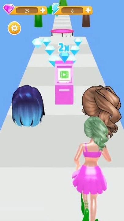 2. 道具收集与装备升级:赛道中散落钻石、发饰等道具,收集后可兑换速度提升、隐身护盾等装备。角色等级随关卡完成度提升,解锁更高阶技能(如冲刺加速、敌人减速)。