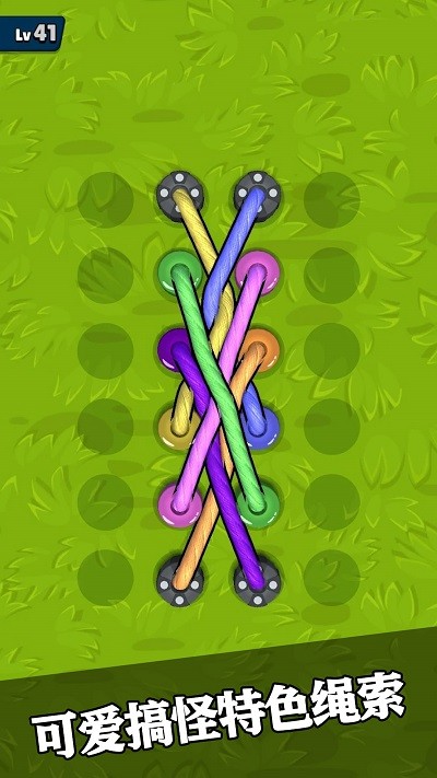 3. 动态难度曲线:前20关以单色绳结为主,逐步引入交叉点、打结点等复杂结构;50关后出现多色混合绳结,需同时满足颜色分组与形状要求。