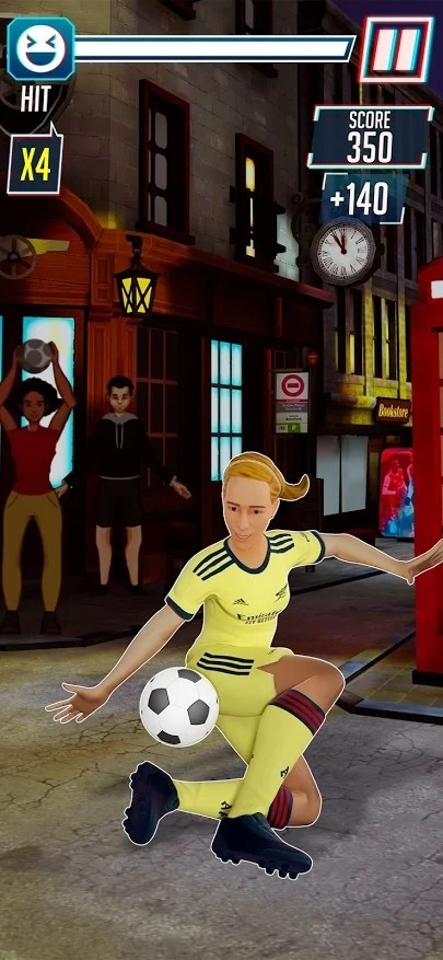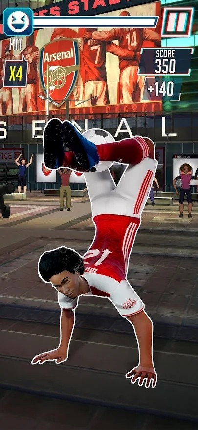 1. 球星专属技能系统:每位阿森纳球员拥有独特花式动作库,例如萨卡的“闪电变向”过人、厄德高的“弧线穿云箭”传球,玩家可通过连续操作触发组合技,提升表演评分。