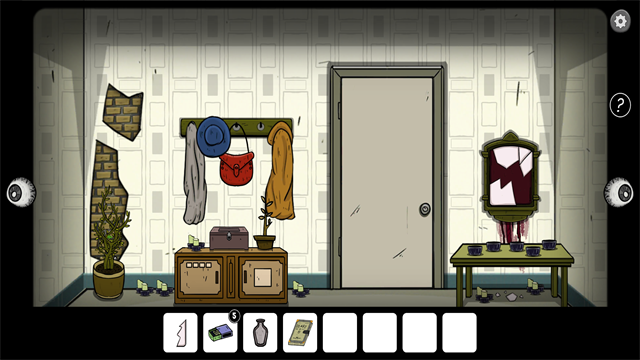 1. 场景探索与物品收集:玩家需在初始场景、窗户场景、时钟场景、厨房场景、电视机场景等多个区域中,通过点击交互收集关键道具,如撬棍、钥匙、美工刀、镜片等。例如,在初始场景左下角花盆处可获得树叶和把手,在时钟场景左侧柜子上可获取断指和空瓶子。