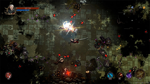 2. 资源管理策略:在随机生成的地牢中,优先获取“暴击增幅”符文与“分身召唤”类技能,前者可提升输出效率,后者可分散敌人火力,同时注意保留药品与Buff道具应对Boss战。