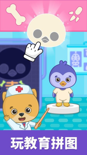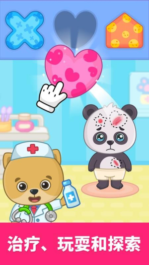3. 互动任务挑战:在互动活动中完成动物护理、工具使用等挑战。例如在医疗模拟单元中,孩子需依次完成挂号、问诊、包扎、喂药等步骤,系统会逐步引导操作,并通过动画演示正确流程,帮助孩子掌握基础医疗技能。