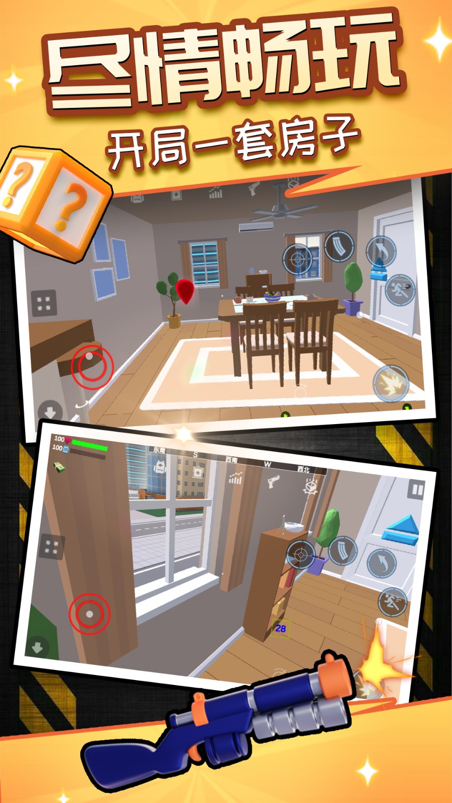 2. 自由建造与物理互动:玩家可采集木材、石料等资源,通过自由建造系统搭建个性化领地,从简易木屋到复杂机关装置均可实现。场景中几乎所有物体均可推动、破坏或利用,例如用火箭筒炸开隐藏墙发现秘密通道,或用弹簧陷阱整蛊NPC,增强沙盒自由度。