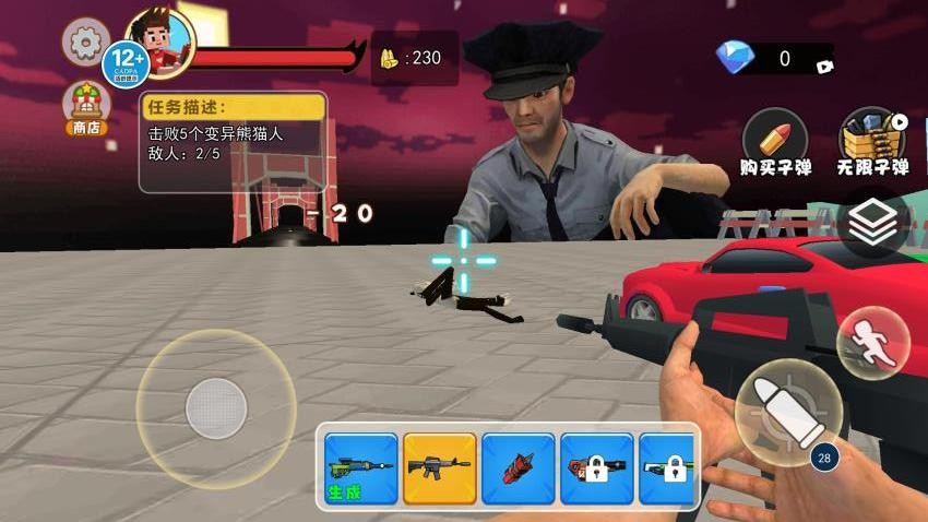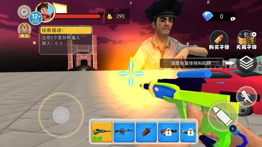 1. 变异生物协同作战:玩家可运用变异枪生成变异熊猫人、变异大象等生物,借助它们与跑车配合牵制敌人。例如让变异生物吸引敌人火力,再驾驶跑车从侧翼突袭薄弱部位,实现战术配合。
