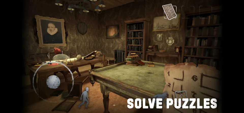 2. 高难度逻辑谜题:谜题设计融合环境交互与现实逻辑,例如需根据墙上日历日期、老式钟表时间与画作数字组合破解密码锁,地下室齿轮装置需用扳手调整至特定角度才能启动。