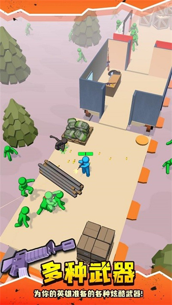 2. 模式设计:提供“保护火车模式”与“生存建造模式”双玩法。前者侧重实时射击与塔防布局,需在僵尸攻破车厢前完成反击;后者强调资源采集与基地建设,玩家需在废弃城市中搜寻木材、金属等材料,打造武器、加固掩体并训练幸存者小队。