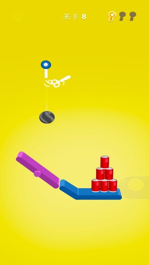 4. 个性化体验突出:有玩家提到“支持更换小球皮肤,收集通关宝箱可解锁特殊道具皮肤,满足了我对视觉差异化的需求。例如,隐藏角色‘分裂小球’剪断绳索后会分裂为3个小球,覆盖范围更广,适合需要同时击倒多个易拉罐的关卡,增加了游戏的趣味性。”