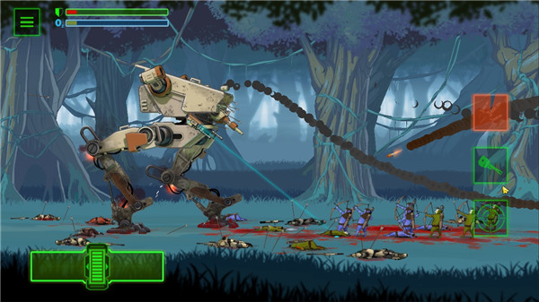 3. 武器与技能系统:初始装备普通火炮与近战武器,后期可解锁加农炮、电磁脉冲、火焰喷射器等强力装备,支持武器切换与技能组合,应对群体敌人或精英单位时需灵活搭配。