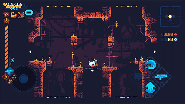 4. 关卡机制:每关需击败特定精英怪解锁BOSS房,全图探索可获得额外血晶奖励,部分关卡存在环境互动(如毒池、激光陷阱),需灵活运用位移规避伤害。