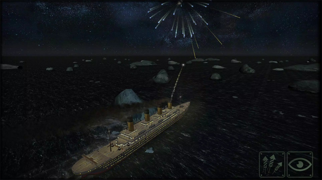 3. 灾难模拟:从发现冰山到船体断裂的全过程均通过动态天气系统与物理引擎还原,玩家可体验船头淹没、船尾上翘、烟囱倒塌等标志性灾难场景。