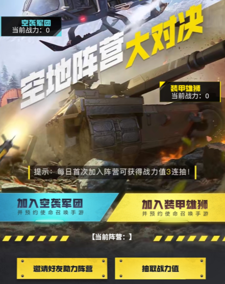 在微信活动里面可以参加相应的活动,只要玩家在微信中成功预约过就可以了,在加入阵营之后就可以直接抽取三次战斗力,而玩家只要达到对应的战斗力就可以领取对应的武器。