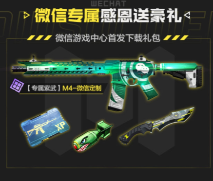 在游戏正式上线的当天使用微信下载使命召唤手游游戏就可以获取,并且在游戏中将自己的账号等级达到19级就可以直接领取到相应的礼包了,并且除了微信联名的定制款m4外还有额外的其他武器可以直接领取。