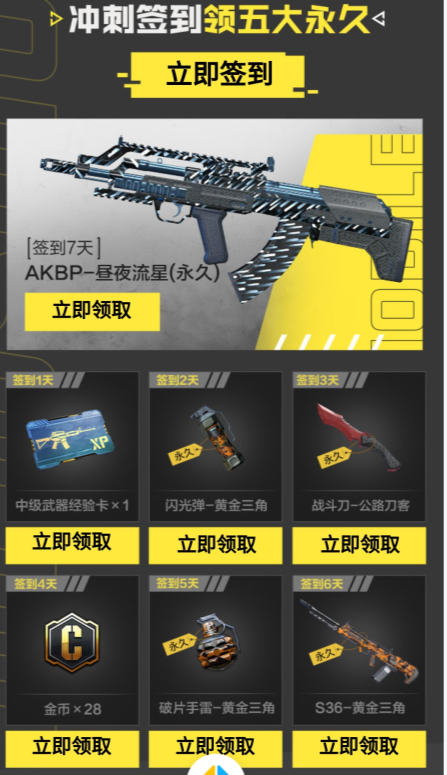 这个活动是只要在微信的游戏中心中连续签到就可以了,每签到一天就可以领取与之相对应的礼物,等签到七天之后就可以直接领取到akbp昼夜流星了。