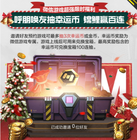 邀请好友预约游戏就可以直接获取当对应的幸运币了,幸运币在游戏中可以用来兑换游戏中微信专属的礼包,在礼包里面可以直接使用幸运币来换取100连抽。