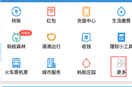 2、登录进入到支付宝以后,在首页点击更多按钮。