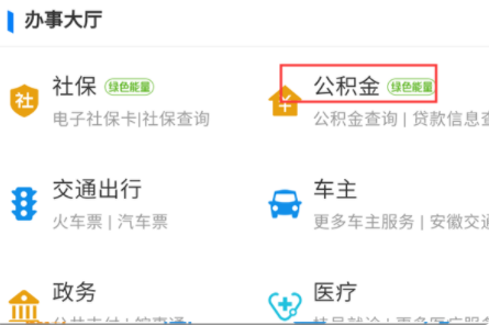 4、页面跳转以后,可以看到公积金服务模块,点击公积金。