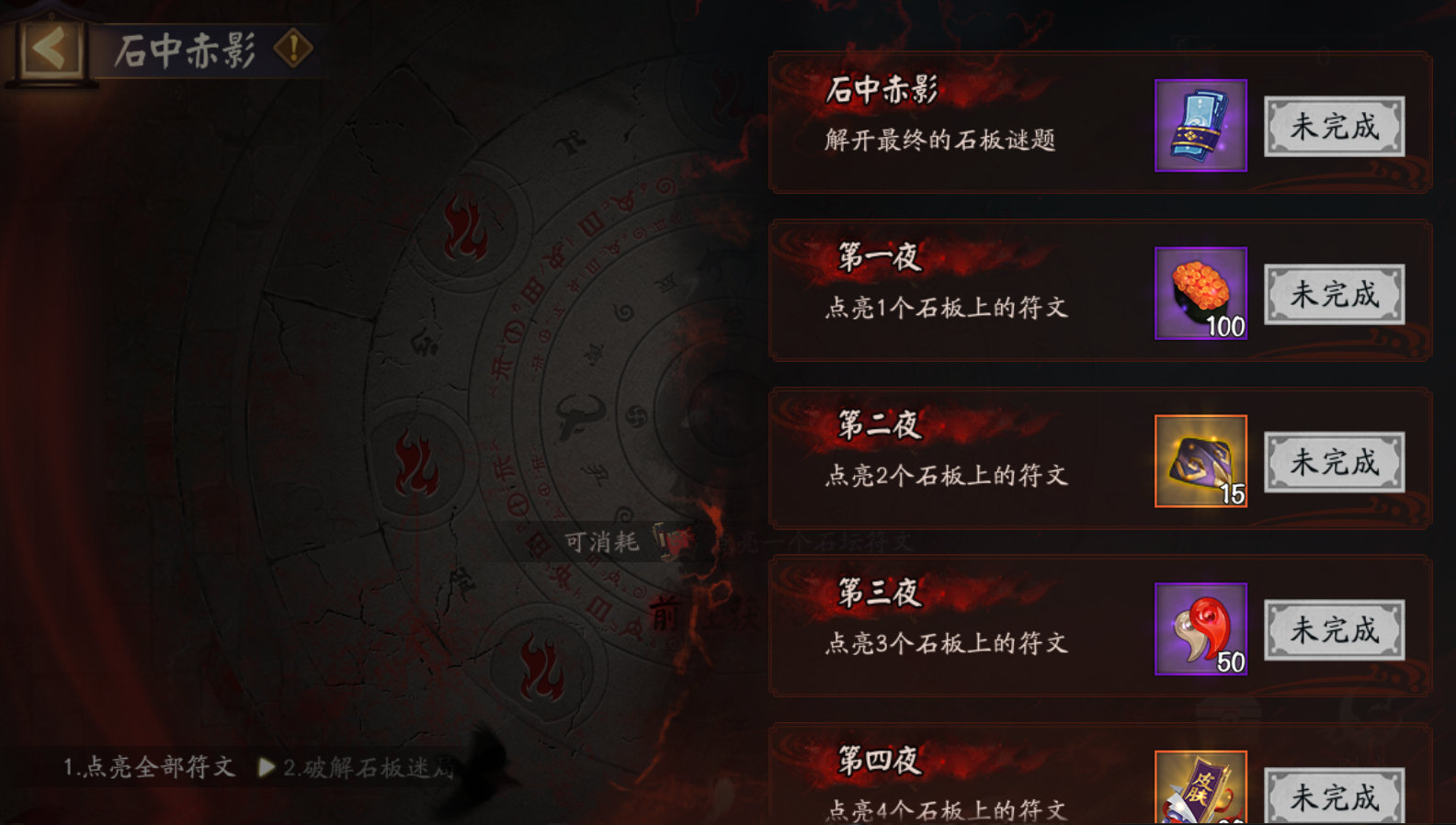 大人点亮对应数量的石坛符文,并解开最终的石板谜题后将获得包括三星奉为达摩、御行达摩碎片、勾玉、神秘的符咒等活动奖励。