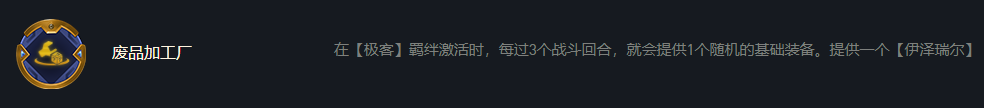 极客羁绊的优势在于装备的灵活性和阵容星级没有硬性要求,很好的解决了连胜却拿不到装备的问题,可以多合成功能装用玩家的游戏理解去颠覆战局。这套阵容对玩家的运营能力要求很高,不会运营去硬玩可能会把把老八掉大分,但高难度的同时它拥有当前版本几乎无敌的大后期,可以说是运营阵容的巅峰之作!