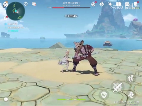 我们第一个来看:安意太郎,楼主的小妙招就是在他抬刀到头顶时,我们数一,然后按下格挡按钮,就可以很容易触发,就是要控制好节奏,80%的机率是会触发的。