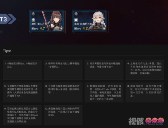 4、以上角色均作为主c考量,因此有些角色强度会因操作者能力、技术、刻印词条等综合数据呈现一定浮动差;
