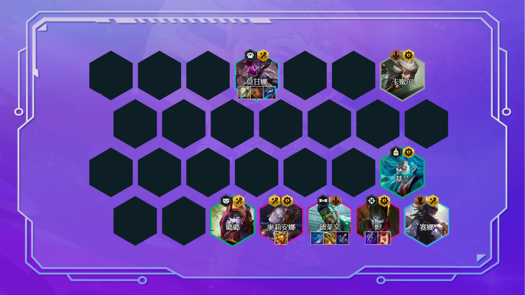 4白魔的治疗和护盾效果提升了10%,因此我们这套阵容的核心前排就是4白魔的莫甘娜。而同样因为有白魔英雄的治疗效果,因此德莱文是不需要做出回复装备的。