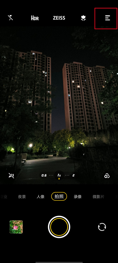 1、打开手机上的相机,点击右上角【三】图标。