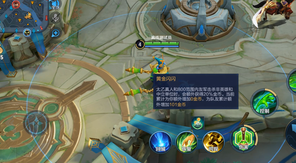 被动:自己可以在状态栏看到被动生效范围,自己和队友可以在状态栏看到额外金币收益的数量