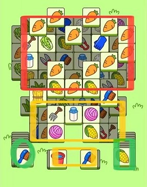 今天这局有两个终点消除区域,下图两个黑色框子就是重叠很严重的部分,也是套路很深的部分,看似下面是你要的,点开后发现还堆了好几层。