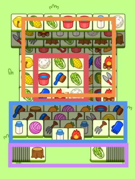 主要消除的地方在红色区,里面有两个叠牌区组成的大别墅。