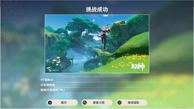 2、装备留影机,用风元素角色留影;