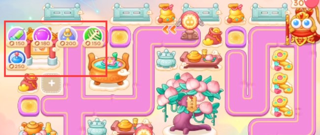 1、本关能够使用的炮塔是:毒针、闪电炮、魔法球、鱼刺、雷达,这一关我们选择魔法球和鱼刺输出。