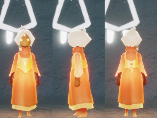 整体造型很有AURORA范感,金黄小肚兜上还装饰了配饰,再加上双层长裙,穿着有一种一不小心就误入了《光遇》异域风情。