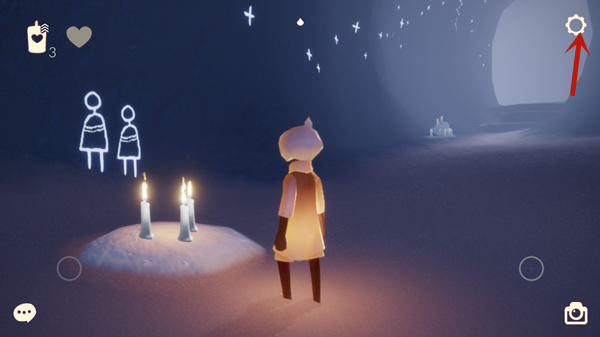1、进入光遇遇境后,点击右上角空白处,调出设置并打开。