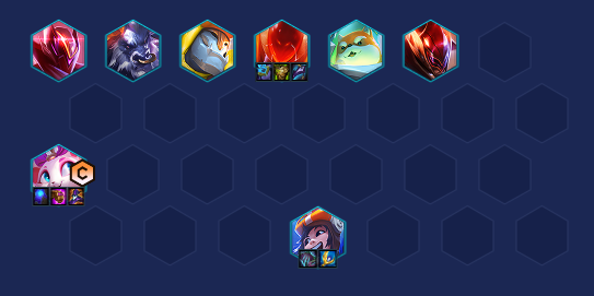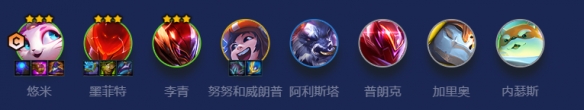由于该阵容整体属于低费阵容,所以在前期可以卡利息D三星,在六人口要追出三星悠米,然后升七开出三超级英雄。在悠米强势期时,要根据对面阵容选择是提高整体质量还是升人口转九五。