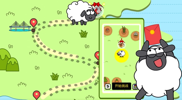 1.进入游戏后玩家需要通过跳草坪来找到礼品,草坪上面有羊羊皮肤的就是可以挑战的礼品;
