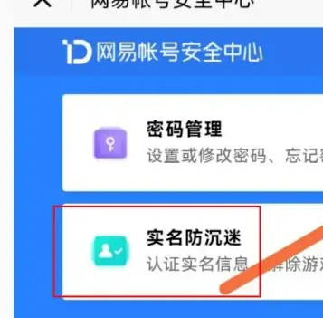 最后在跳转的页面中,点击选择“实名防沉迷”选项,即可在将要跳转的页面中将已经绑定的未成年账户换绑。