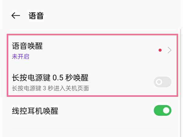 3、点击语音唤醒,关闭【语音唤醒】开关和【长按电源键0.5秒唤醒】开关即可。