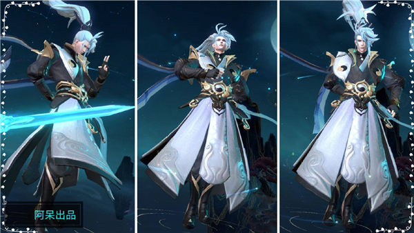 2、这款皮肤的外观造型十分帅气,以诸葛亮为原型,融合了水墨古风元素,一头洁白的银发尤其吸晴,身边还有一把宝剑。