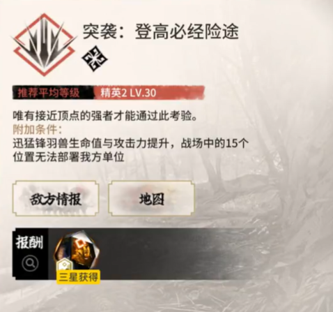 附加条件:迅猛锋羽兽生命值与攻击力提升,战场中的15个位置无法部署我方单位。