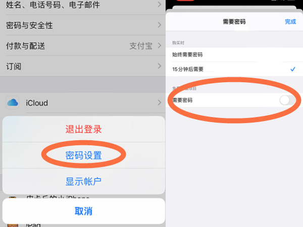 2、在帐户设置中点击左上角头像,选择【密码设置】,在免费下载项目中关闭【需要密码】开关即可。