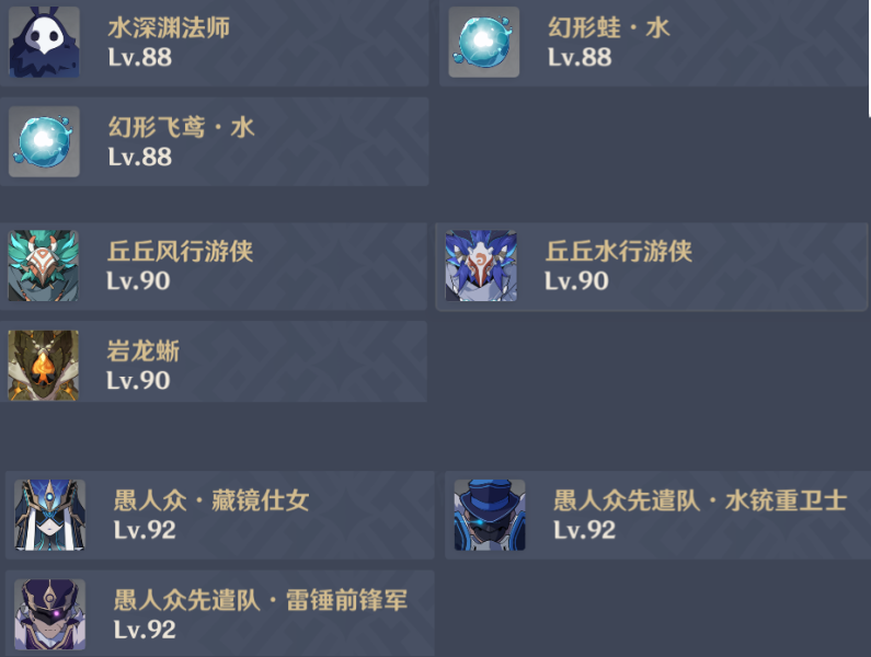 第一间需要我们针对水类型的敌人做出一些特攻手段调整,还需要配备一些对空手段。草原核绽放各种衍生打法会比较容易,且也具备一定对空能力。其他的话,冰核火核展开,各自对应的蒸发、融化以及纯色体系也都可以打。建议大家有护盾角色,像钟离迪奥娜这些就带上吧,水环形的进攻性还是非常强的。
